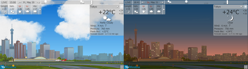 The magic of YoWindow is the living landscape that reflects actual weather.